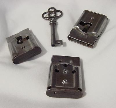 3 matching Orig Old Antique furniture hardware parts* Drawer Box Locks & Key