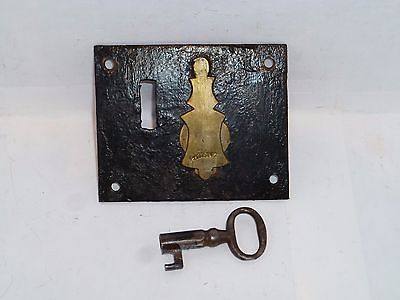 Antique Trunk Lock with Key. Circa 1850. Brass Escutcheon and Keyhole Cover