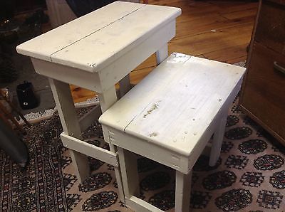 Shabby COTTAGE Chic WHITE Vintage Side TABLES SET OF 2