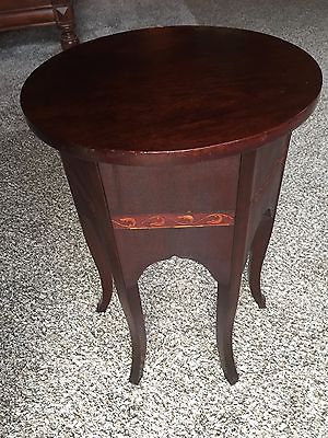 Title (ebay affiliate link): VINTAGE MAHOGANY PLANT STAND / LAMP TABLE: ROUND w/ SIX SIDES+ MARQUETRY BANDS
