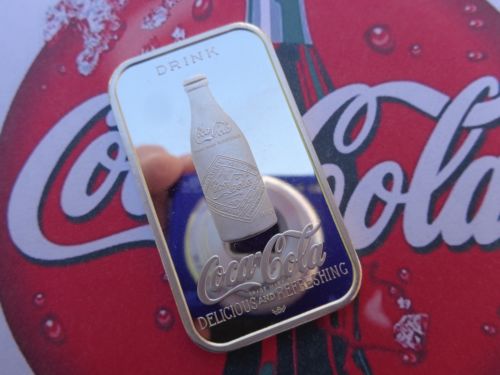 Title (ebay affiliate link): 1 oz. Coca-Cola Louisville 75th ann. silver art bar .999 fine silver