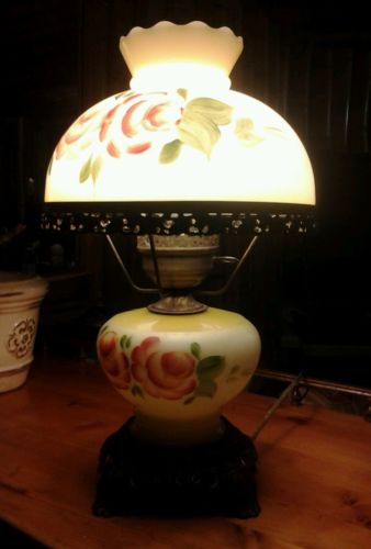 ANTIQUE ORIGINAL HAND PAINTED 3 WAY LIGHT HURRICANE LAMP