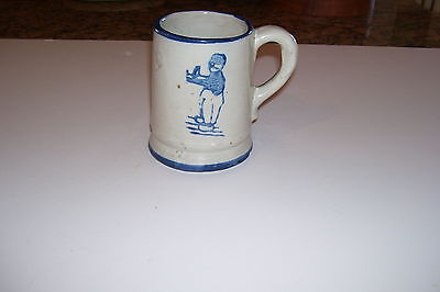 Antique Stoneware Mug with Dutch Family On-Blue Trim