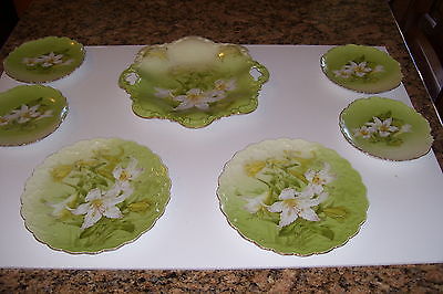 Gorgeous Antique 7Pc. Set of P T GERMANY Dishes w/Beautiful Hand Painted Lillies