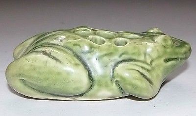 ANTIQUE VINTAGE FLOWER FROG GREEN FROG EARLY POTTERY DESIGN