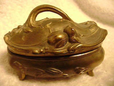 VINTAGE W.B.MFG. CO.BRASS METAL ELABORATE TRINKET BOX FOOTED HINGED....ESTATE!