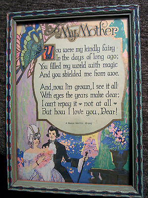 Vintage 1927 Buzza Motto "My Mother" Framed Motto
