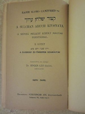 Judaica KITZUR SHULCHAN URUCH, SHABBOS, Budapest 1938, Hungarian.