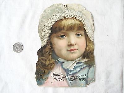 "HOOD'S SARSAPARILLA CALENDAR 1889" quack medicine adv. girl in bonnet as is
