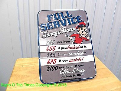Title (ebay affiliate link): Shop Rates Metal Sign Vintage Looking Service Station Oil Can Gas Fuel Mechanic