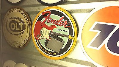 Fender Guitars & Amplifiers 12" Round Vintage Style Metal Tin Sign Guitar Amp