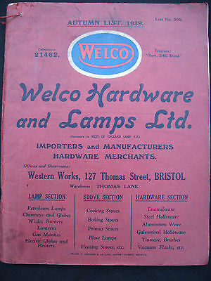 Oil Lamp Trade Catalogue 1939 Welco Hardware + Lamps Bristol 92 pages VGC