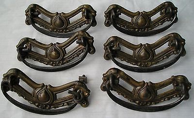 6 Antique Vintage Matching Brass Drawer Pull Handles Dresser Buffet Furniture