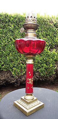 Pretty Onyx and Brass Oil Lamp with a Gold Painted Bright Deep Red glass font