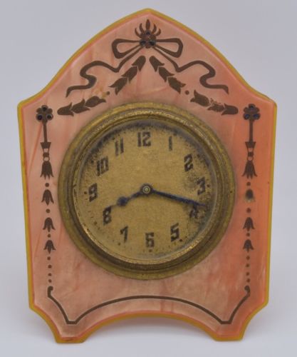 Title (ebay affiliate link): Antique Miniature Celluloid Pink Pearl Desk Novelty Clock 1920's Made In USA