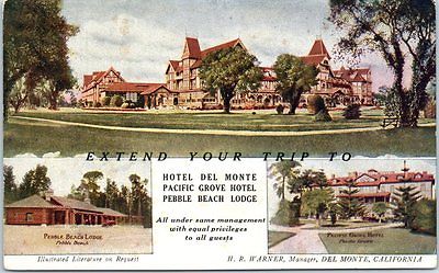 Title (ebay affiliate link): 1910s California Postcard Del Monte & Pacific Grove Hotels & Pebble Beach Lodge