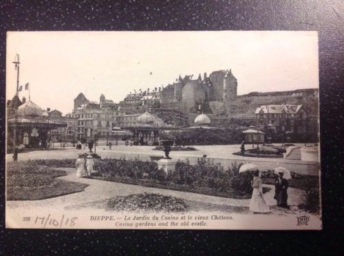 Title (ebay affiliate link): Vintage Postcard Dieppe Jardin Casino et le Vieux Chateau 1918 France Original