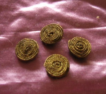 4 TINY VICTORIAN FRENCH METALLIC APPLIQUES 5/8" DOLLS