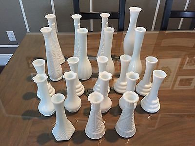 Lot Of 21 Milk Glass Vases, Excellent Condition!