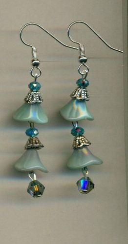 Title (ebay affiliate link): Antique blue 'milkglass' bellflower crystal artisan earrings Birdsongjewelry