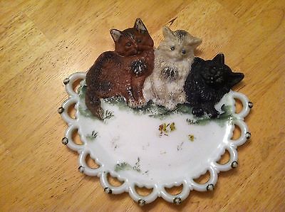 Antique Decorative Milk Glass Cat Plate -Not a Repro