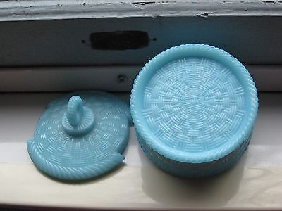 Bright Sky Blue Portieux French Blue Milk Glass Round Basket Great for Easter