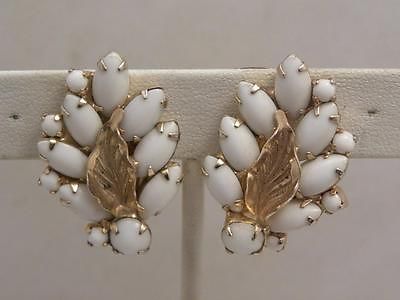 VINTAGE WEISS MILKGLASS LEAF EARRINGS