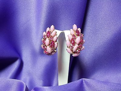 Pink Milk Glass and Pink Rhinestone Gold Tone Vintage Earrings Marked Kramer NY
