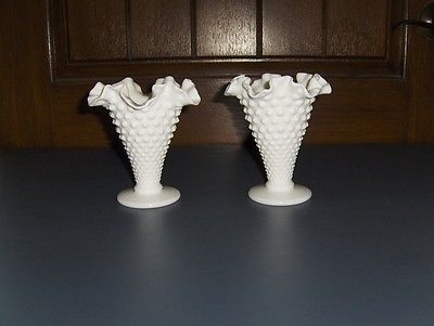 milk glass cone vases, set of two