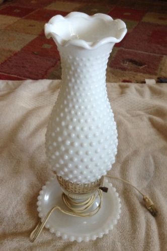 Vintage White Milk Glass Hobnail Electric Hurricane Lamp