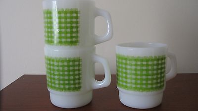 Vintage FIRE KING green white milkglass checkered gingham Mug stackable D handle