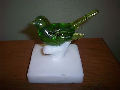 Westmoreland Glass Bird on Branch Green and Milk Glass