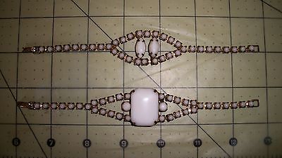 VINTAGE 2 PC LOT RHINESTONE COSTUME JEWELRY, MILK GLASS BRACELET,RHINESTONE