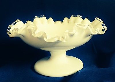 Title (ebay affiliate link): Vintage Fenton Milk Glass Silver Crest Ruffle Compote Candy Dish Pedestal Bowl