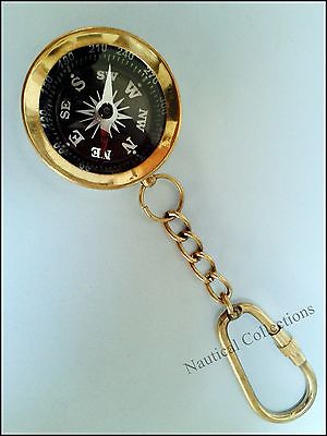 Nautical Brass Pocket Compass Key Chain / Brass Antique Nautical Gift Key Ring