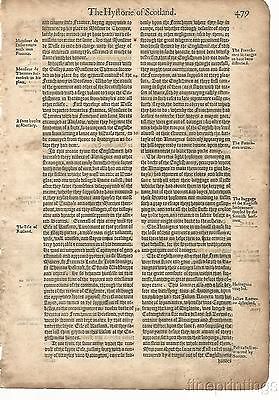 1577 LEAF FROM HOLINSHED CHRONICLES OF SCOTLAND