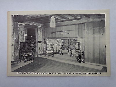 Vintage postcard Fireplace in Living Room Paul Revere House Boston Massachusetts
