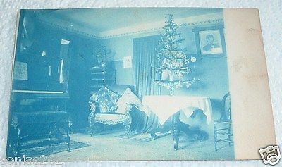 Title (ebay affiliate link): Antique Postcard RPPC Wisconsin Living Room Christmas Blue Tinted 1908