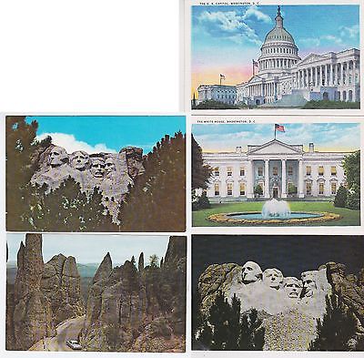 Lot Five Clean Unusued VINTAGE Postcards, WHITE HOUSE, MT. RUSHMORE, etc.