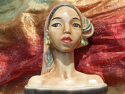 Antique Goldscheider Everlast Brown Skin Lady Green Turban African USA "As Is"