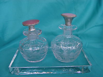 Title (ebay affiliate link): ANTIQUE ETCHED FLORAL GLASS PINK GUILLOCHE ENAMEL STERLING PERFUME BOTTLE PAIR