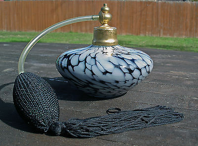 Murano Glass Perfume Atomizer Black, White, Brass Lovely Chic Vintage Midcentury