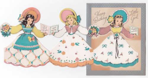 Title (ebay affiliate link): Vintage Greeting Card Cute Paper Doll Chain Die-Cut Girls Accordion Fold 1940s