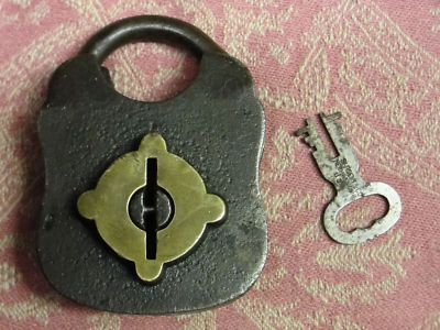 Title (ebay affiliate link): Antique Iron & Brass Primitive Padlock Lock Unusual Key