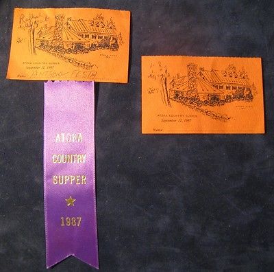 Title (ebay affiliate link): 1987 Ticket Atoka Country Supper John Warner's Farm 1987 Ribbon & Ticket