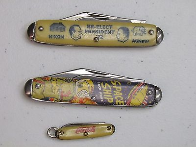 Nixon & Agnew Double Blade Pocket Knife 1972 + coke knife and space ship knife