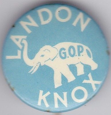 Title (ebay affiliate link): '36 Republican LANDON KNOX GOP Blue Elephant Political Pinback Button Pin Badge