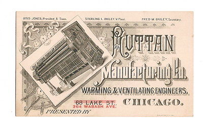 Title (ebay affiliate link): Original 1888 Trade Card, Ruttan Mfg. Co., Chicago, Announcing New Address, Nice