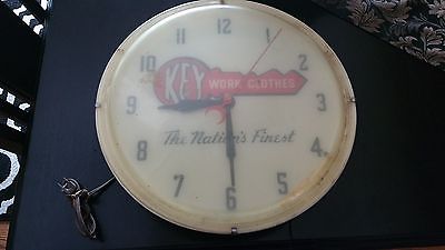 LIGHTED ADVERTISING CLOCK "KEY WORK CLOTHES" VERY OLD 1950S