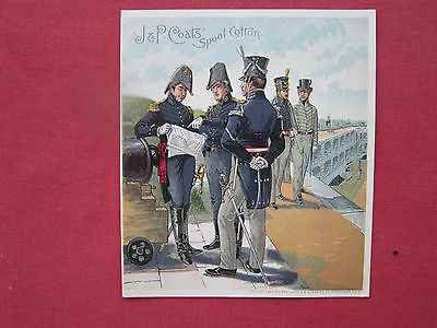 J & P COATS SPOOL COTTON, U.S.ARMY 1821-32 UNIFORM vintage Tradecard c.1890's